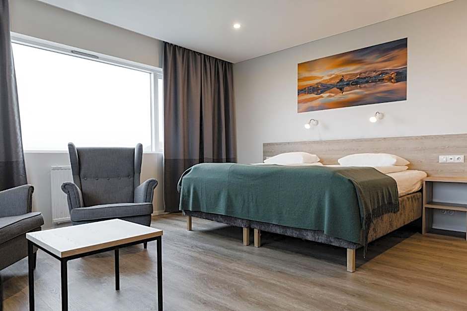 The check in was easy and quick. The layout is very different in that there are at least 6 buildings. The room was clean and comfy. We didn't get to use the sauna or hot tub but they looked fine. The restaurant was really nice - loved the design and wood timbers. Breakfast was plentiful. Bummer that a latte and a few other coffee drinks are not included. Coffee is! The variety is excellent - better than most hotels here in the US. Very close to Vik (5 minutes max). We would stay thee again for sure. Oh, the sheep roa ming in the parking lot and right outside the hotel window is a bonus.