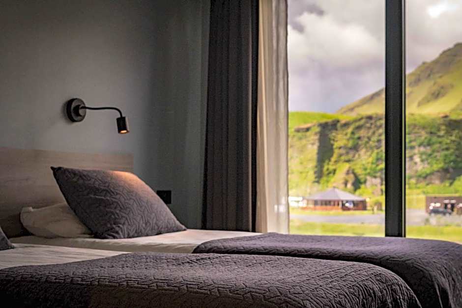 Nice, cozy rooms, great staff, convenient restaurant downstairs with an excellent hot breakfast. The location is tops: directly across the street from the stable if you’re going to do the black sand beach ride. Also across the street and slightly over from a very central plaza for Vik: it has the grocery store, a huge REI-type outdoorsy store, a couple of restaurants, and is also the meeting point for most of the glacier tours. So, walkable!