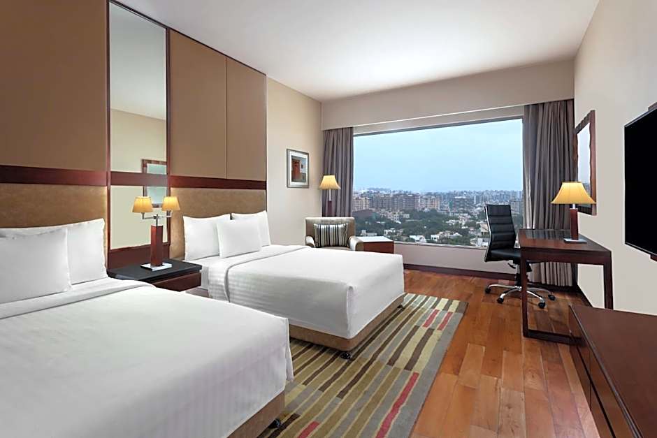 Guests will enjoy the spacious and well-appointed rooms, complete with free Wi-Fi, air conditioning, and a private bathroom. The hotel also offers various dining options, including a restaurant serving delicious meals and a kid-friendly buffet. Whether you're traveling for business or pleasure, the Courtyard by Marriott Ahmedabad is the perfect choice for a memorable stay in Ahmedabad.