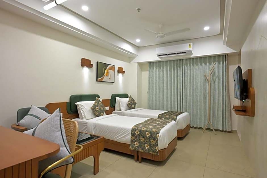 is a 5-star hotel in Ahmedabad, India, located about from the city center. Address: Opp.Gokuldham Soceitysar,Sarkhej Sanand Road,Ulariya Cross Road Sanathal,Ahmedabad.