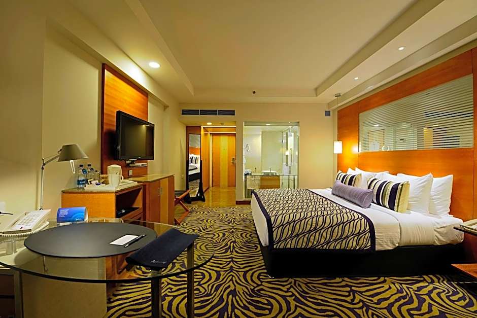 Guests can enjoy upgraded fixtures and TVs, exclusive artwork and richly textured fabrics. It includes a separate living room, stylish bathroom with a walk-in bathtub and rain shower. Inclusions: · Buffet breakfast for 2 guests, (kids below 5 years complimentary and kids aged 5-12 at 50% discount on buffet rate). Choice of the Super Breakfast buffet at Timpani or select breakfast through in-room dining. · Complimentary incoming faxes · Complimentary two-way airport transfers
