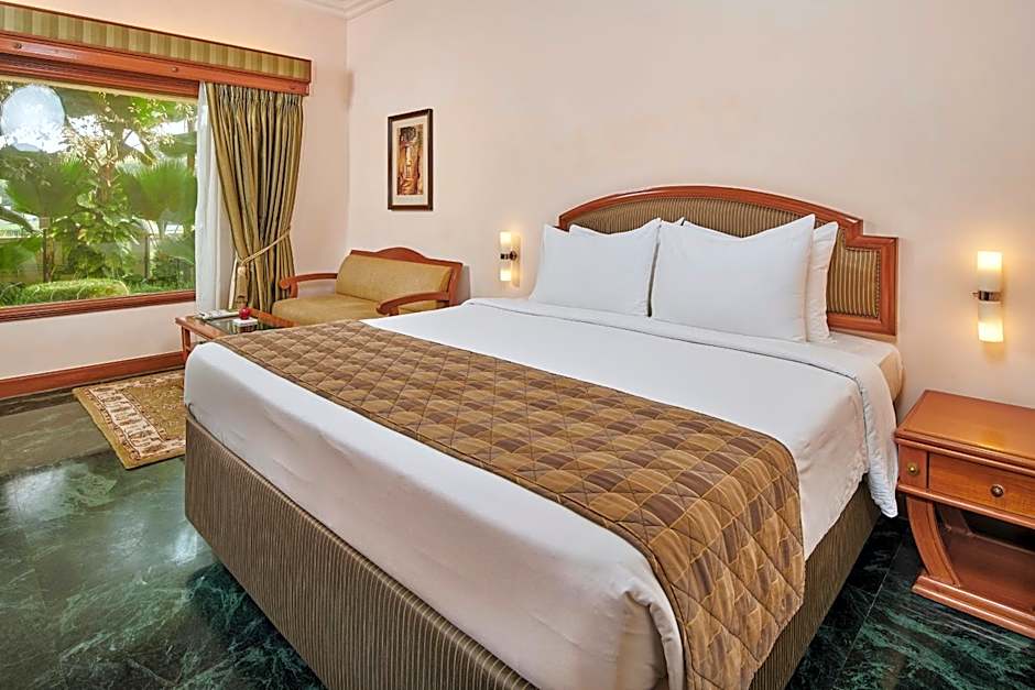 The Ummed Ahmedabad Airport offers several types of rooms. There are Executive Suites with Pool View, Royal Suites, Deluxe Double Rooms with Pool View, Deluxe Double Rooms with Garden View, and a Presidential Suite available. These rooms vary in size, with the suites being larger than the double rooms. Smoking is not allowed in any of the rooms. The rooms can accommodate up to 3 adults and 1 child, and the beds range from a single King size bed to a combination of Twin and Double beds.