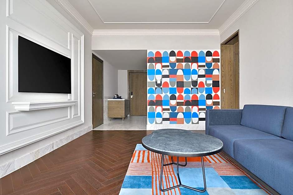 This suite has a living room, electric kettle, seating area and tile/marble floor.