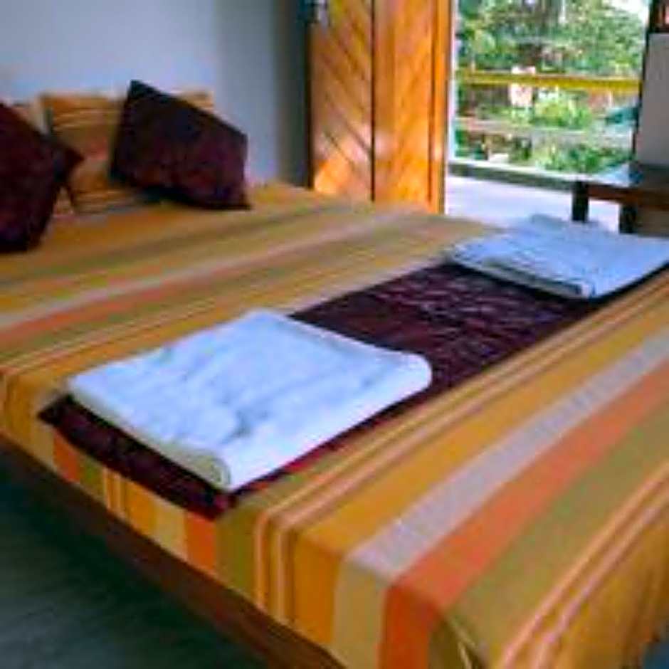 The room that we stayed in was far more spacious and more luxurious than we imagined. The bed was absolutely huge and there was a lot of extra space for storage. We had a little balcony as well where we could chill in the evenings with a drink and enjoy the fresh air. There is also a pool at the property which was a welcome relief from the heat of the day. On the ground floor, the property has a restaurant which serves pretty decent quality food at reasonable prices and of course, the 'all you can eat' buffet breakfasts were a huge bonus! Auroville can be reached in about a 5-10 minute cycle ride from the property and historic centre of Puducherry (White Town) is about a 40 minute cycle ride.