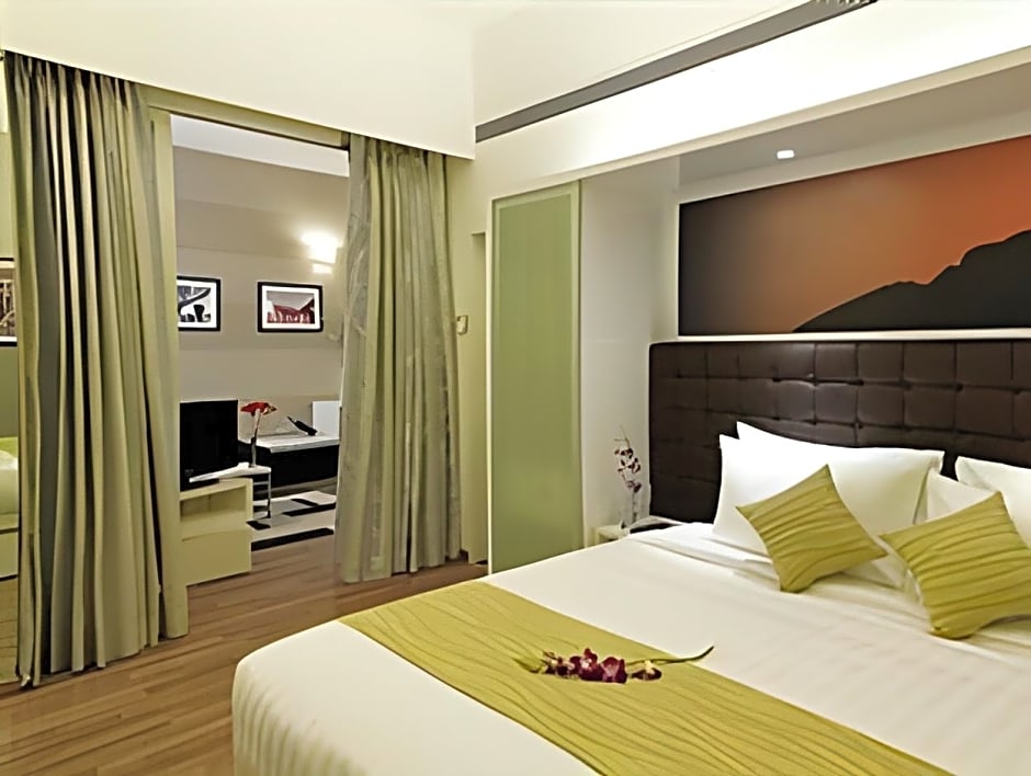 Spacious two-bedroom suite features a separate living room, kitchen with stovetop, flat-screen TV with DVD/CD player. Also includes a safe, refrigerator with mini-bar and a music system. The attached bathroom comes with rainshower. These suites have a private balcony and 2 bedrooms. It can accommodate 4 adults. Complimentary WiFi is available.
