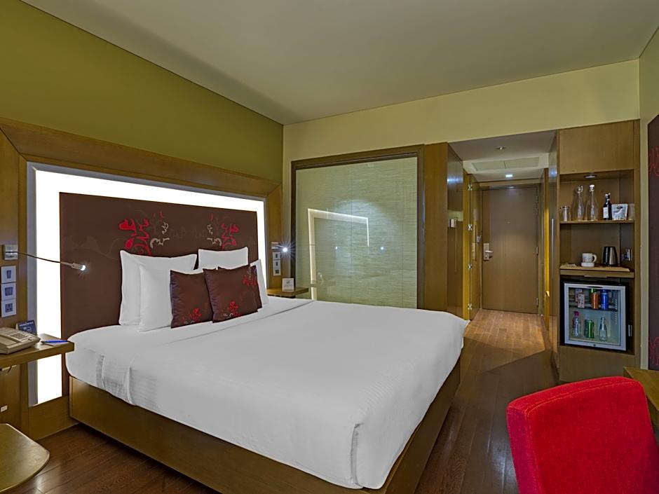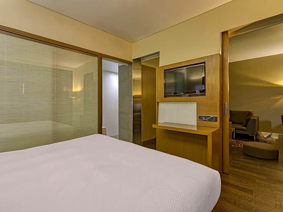 Executive King Suite with 20% Discount on Food and Soft Beverages. Overlooking the city features, these suites feature amenities for both, leisure and work travelers. This lavish one-bedroom suite comes with a living room with a work desk, high-speed Wi-Fi, coffee machine, in-room safe, walk-in closet and LED TVs in both rooms. The bathroom is equipped with a bathing tub, rain shower head and hairdryer.