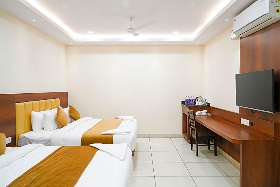 The location was very good. Near the Airport. Good coordination and guidance by the manager Sri Kumar., ever smiling and ready to help. Breakfast and other food items are tasty. Restaurant open till midnight is a plus point.