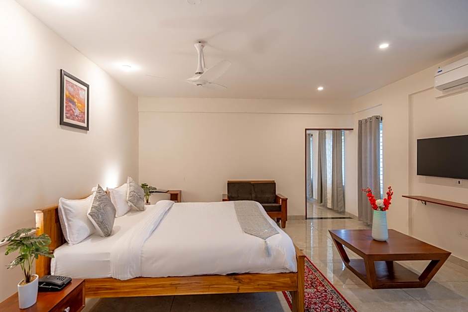 Prices start from a budget-friendly minimum, making this charming spot an excellent choice for savvy travelers. Whether you’re relaxing in your kitchenette with a view of the temple or unwinding on the patio with garden vistas, The Silver Chimes Suites promises a memorable stay. With its modern amenities, attentive 24-hour front desk, and a location that offers both tranquility and accessibility, your Bengaluru getaway is just a reservation away!