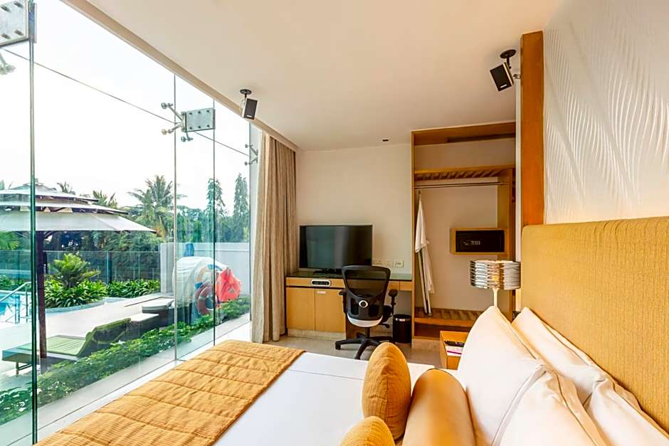 Featuring stunning views of the pool and tennis courts, room comes with a surround sound system, rain shower and a multi-media panel.