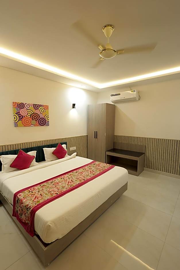 Address: 100 Feet Road 00ft Ring Road Opp. Greenvalley School Near Pansal, Circle. This property offers a Restaurant, Outdoor swimming pool (free), Private Parking (free), Wifi (free), and Room service (free). Inside, enjoy air conditioning, soundproof rooms, a 24-hour front desk, garden view, sun deck, terrace, elevator, garden, extra long beds (> 6.5 ft), free toiletries, and a bathtub. Pet Friendly (extra charges) is available, and Beach umbrellas (free) are handy for sunny days.