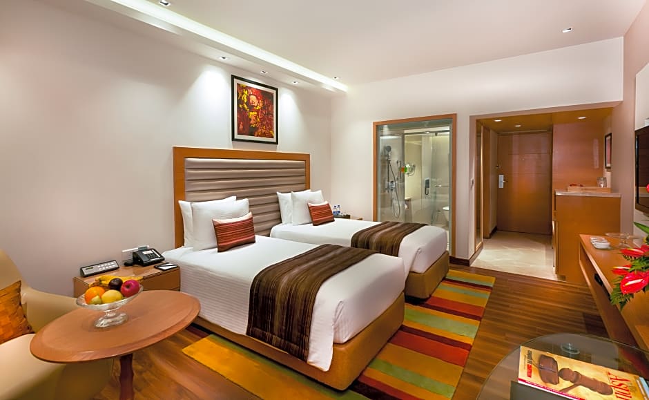 For dining options, guests can choose between Bazaar, which offers international cuisine, and Jai Hind, which serves authentic Indian dishes. Both restaurants provide a delicious dining experience within the hotel premises.