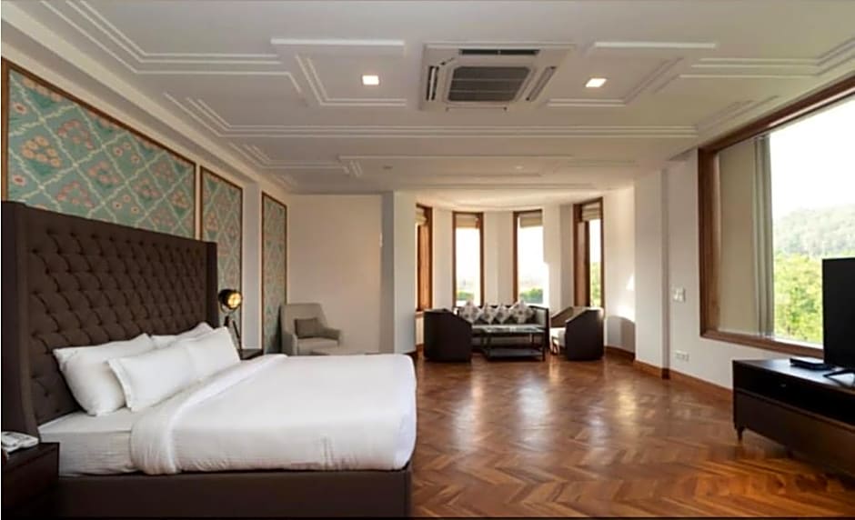 The hotel offers an on-site multi-cuisine restaurant with ambiances suitable for families, traditional, modern, and romantic dining experiences. The restaurant serves Indian cuisine, providing a range of dining options for guests.