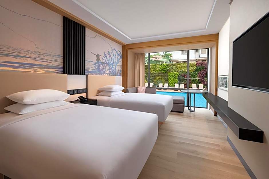 Δωμάτιο Deluxe, 2 Κρεβάτια Κουίν, Μερική Θέα Πισίνας