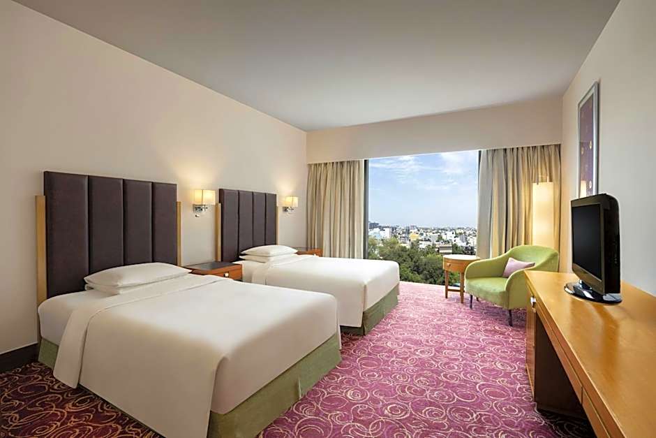 Great location and Ambience, the staff is very courteous and professional. Actually, we stayed at the Mariott convention center. We faced some inconvenience while check in, and Mr Sur was kind enough to make immediate amends and upgraded us. The rooms are well appointed and comfortable. But a little cramped for triple occupancy and twin beds. The breakfast spread is excellent, especially the patisserie. Sausages and bacon are not a regular affair, advised them to make it standard offering. Could do well to offer more non vegetarian food.