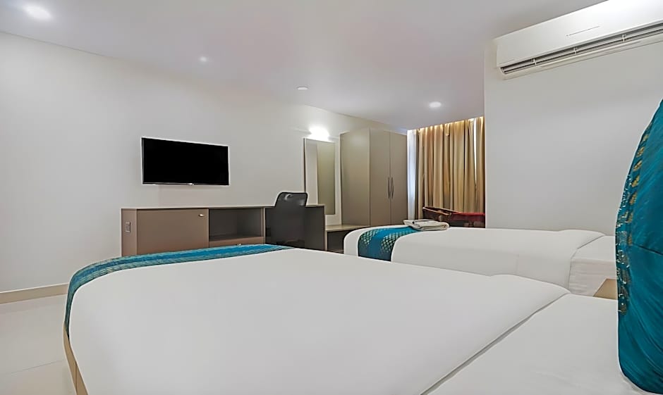 The hotel is undergoing a transition from what I gathered. It is changing ownership from OYO to the FAB management. In all respects the hotel has a lot to improve on: 1. No tea / coffee service in the room 2. No shower curtain in the bathroom. Soap dispenser frames are present, but no soap dispensers. All we got by way of toiletries was a small piece of soap. Bathroom had no towels till we pointed it out. Their room readiness was very poor. Bathroom door handle-cum-lock was very loose 3. Laundry delivery is spotty at best. As a result, when we got to our room, the bedsheets were stained and all white coverss, bedsheets had a distinctly grey appearance. We insisted on better sheets as a prerequisite for checking in 4. "Breakfast included" is true, but of the two items on offer, one is cold. There is no spread to pick from, only the two items provided. Presentation of these items also is in large containers and not on any kind of bain marie 5. Very noisy location, on some highway with loads of traffic noise 6. Not sure about parking. There is an underground parking with vehicles parked haphazardly. When we tried, lift could not be summoned to the basement 7. If you are using a taxi service, then you will need to walk a bit to get to the lift - hotel occupies the third and fourth floor of the building