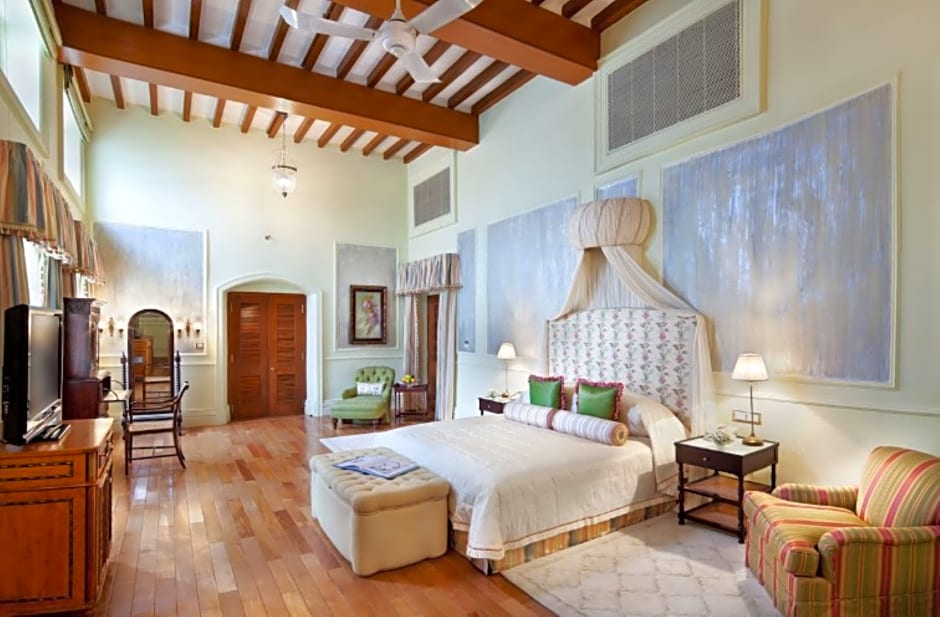 Palace Rooms are spacious and comes with a lavish and regal canopied Bed, a tea and coffee maker, mini bar, electronic safe, free WiFi and LCD Television. The rooms have oak wood floors and hand-painted walls.