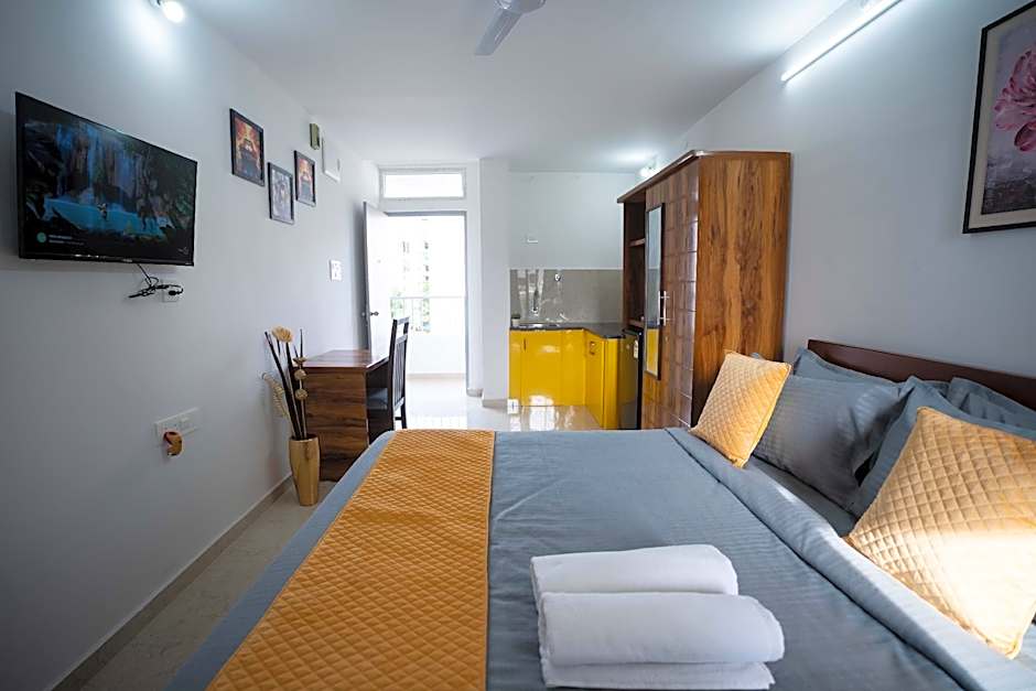 Hyderābād's Yellow Bells Studios And Suites is a 3-star apart-hotel that aims to make travel feel uncomplicated. Free private parking and free Wifi pair with air conditioning and a private entrance to greet arrivals. On-site parking is free, and handy conveniences include a terrace, kitchen, kitchenware, and a kitchenette, plus non-smoking rooms, free toiletries, a bathtub, a balcony, a garden, and an elevator. A 24-hour front desk helps with check-ins and inquiries.