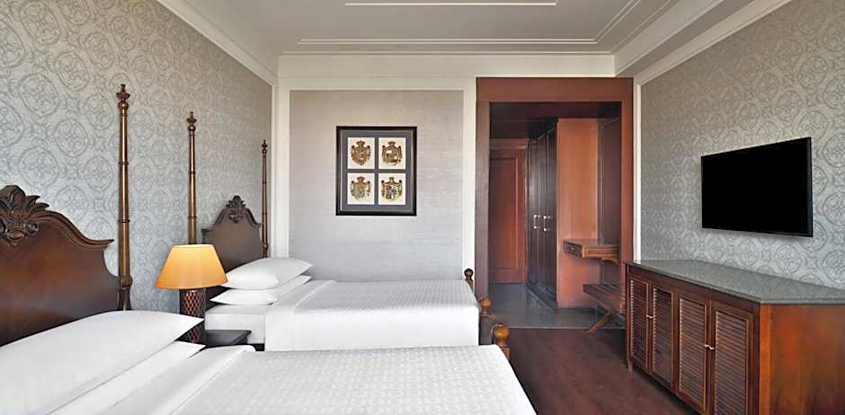 The Sheraton Grand Palace Indore offers a variety of room types including Suites, Doubles, and Twins. All rooms have a non-smoking policy. The rooms range in size from 334 sqft to 764 sqft and can accommodate 3 adults and 1 child. The bed options include King size beds, Queen size beds, and Twin beds, along with a sofa bed in all rooms.