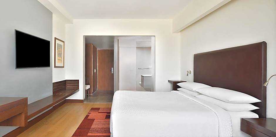 At Four Points by Sheraton Jaipur, City Square, guests can choose from a variety of room types. The Club King Room with Lounge Access is a double occupancy room with a king-size bed and a twin bed. The Deluxe Suite offers a single occupancy option with two double beds. The Deluxe King Guest Room and Deluxe Twin Room are both double occupancy rooms, with the former featuring a king-size bed and a twin bed, and the latter having three twin beds. The Club Twin Room is a single occupancy option with three twin beds, and all rooms have a strict no-smoking policy.