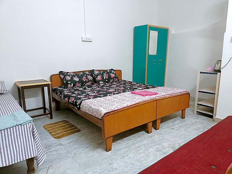 I'm a guest from Europe. If you want to feel home away from home - this is a great opportunity! Asha ji welcomed us warmly and was always very attentive to our needs. Room was comfortable, with AC, private bathroom, hot water, towels and anything you need. We also had homemade food here and it was pure veg, what was really pleasing! The house is full of life and cosy atmosphere. It was more than renting a room, because it was really a nice experience to meet such intelligent and generous souls as Asha ji and her husband. Location is very close to the airport, so it's very convenient, easy to catch transport (tuktuk, cab, bus), also it's a quiet area, good for resting. Recommending!