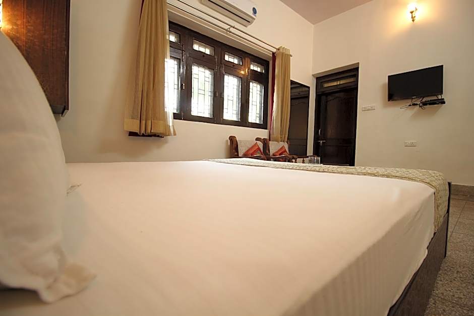The room is with a balcony, terrace and is on the first floor with twin single beds, dressing mirror and a wardrobe. It has a small bathroom with Indian toilet seat and hot water facility. It is located on the ground floor.