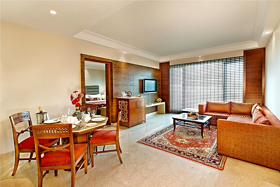 On Jagatpura Road near Jawahar Circle, The Lalit Jaipur presents a stylish urban retreat with a touch of luxury. An outdoor pool is available year-round, with an adults-only policy for a quiet sun-soaked escape. Free private parking and complimentary wifi add ease to every stay, while a 24-hour front desk is ready to assist with plans and requests.
