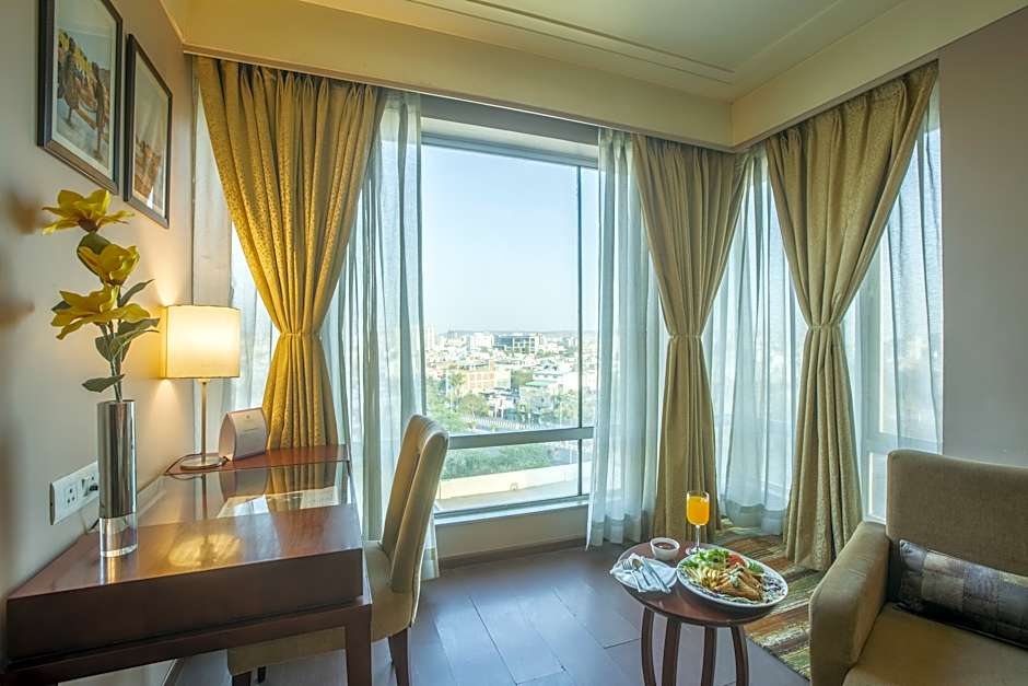 Outdoor spaces invite a relaxed pace after Jaipur adventures: an all-season outdoor pool that’s adults-only, plus a garden with a view and a picnic area for sunlit breaks. The pool is a standout for guests seeking a refreshing dip in any season, with other outdoor corners perfect for lingering over a drink or a good book.