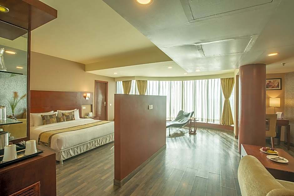 At Vesta International, guests can choose from a variety of rooms including Royal Deluxe Double or Twin Rooms, Executive Rooms, Deluxe Rooms, and Suites. Most rooms can accommodate 2 adults and 1 child, have a non-smoking policy, and offer either Twin beds or a Queen size bed. Room sizes vary, with the Suite being the most spacious at 355 sqft.
