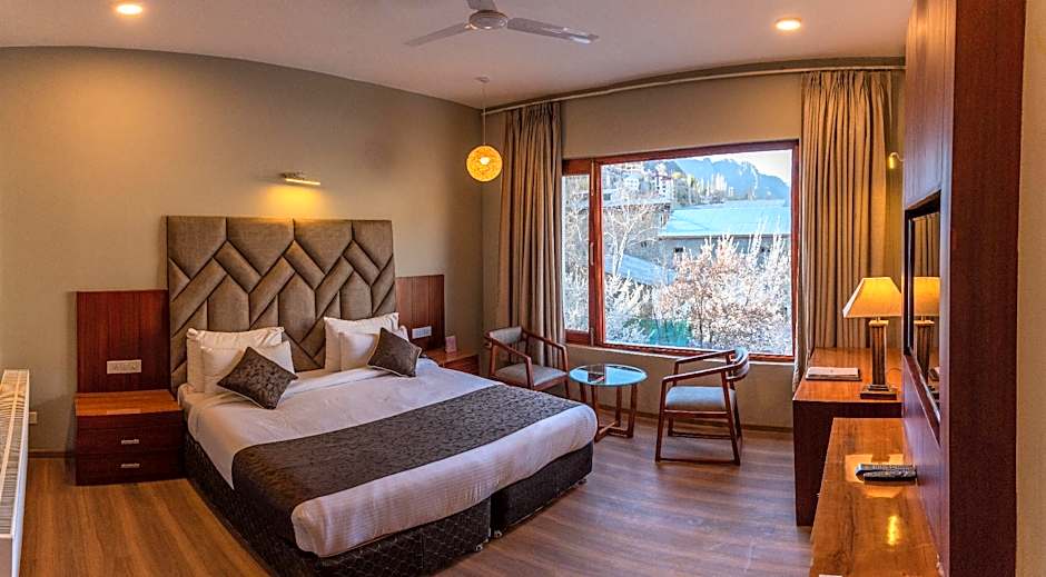 Extremely modern Hotel in a not so modern place ! Beautiful laid out dining area , good spacious rooms with well equipped washrooms . Good spread of meals for both dinner as well as breakfast . We were treated to apricots grown in the garden of the hotel , which was a warm gesture from the Hotel staff. Very commendable of maintaining such facilities in a very difficult place at a value for money proposition .