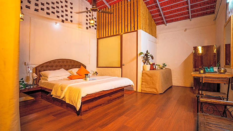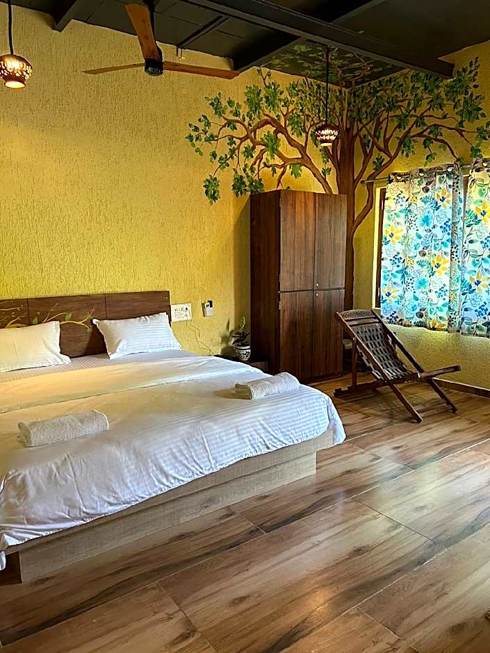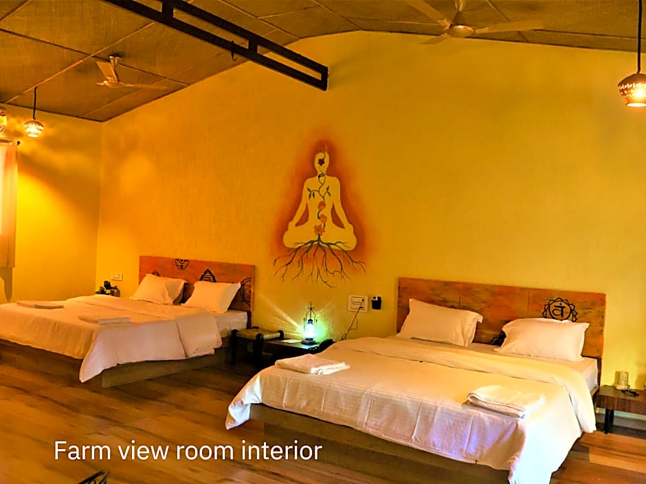 Having booked this place via booking.com post searching on Google reviews (since booking.com had no details nor facility information) for an 6th anniversary surprise for the wife. The place is close to Mumbai/Thane and very close to the main highway. The road marker is bit small and can be missed if not attentive. Google map shows an route few hundred meters ahead(incorrect route). Correct route from the main road is an Kaccha rasta (dirt road.. 4 wheeler vehicle can easily go though) to property. Property from the entrance can't be known as it's a 2 min walk from the gate to the reception/other areas but you can see to your right wonderful vegatable gardens while you walk through. Parking is available inside the gate as well as outside too (a few feet in front). Entire property is designed considering the gradient of the land (Entrance at high and rooms towards the river edge). The vegetable/fruit plantations have also been planned keeping the most natural set up for them (they use no chemical fertilizers nor pesticides). Organic end to end. 7 rooms in all - 4 facing the river view and 3 garden view, with a meditation center, restaurant, front desk, Ayurvedic spa rooms. The property has 50 odd Gir cows (which are fed green fodder, and allowed to graze openly too) from which milk for guests is used and ghee (organic) for sale is made. The waste from cows is used for fertilizers via sludge and vermicompost method. The team uses 90% of vegetables grown inhouse (except onions and potatoes which do not grow in red soil there.. although they keep trying). They grow a lot of fruits (Sapota aka chikku, Mango, Mosambi, Jamaican/Singapore cherries, cherries, Java apple, Bananas, mini oranges. They also grow Turmeric at the farm which they grow, organically harvest and sell and they sell Guntur chilli powder which they source from elsewhere. They have Pigeons, fish at the property which one can see.