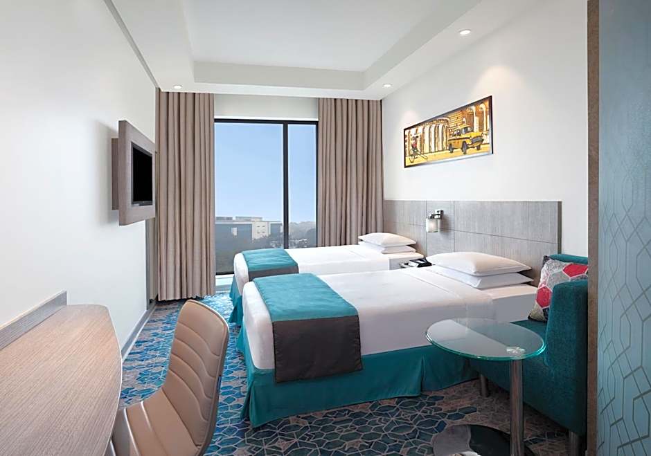 Hotel is located close to airport which is more convenient for travelers. Hotel is maintained very well and its very clean, also the staffs are always there to help you with smile. Landscape around the hotel is amazing. Food in express cafe and palms kitchen both were really good. Nothing much to complain, to be short it was a very pleasant and comfortable stay. Thank you Holiday Inn Express and Team