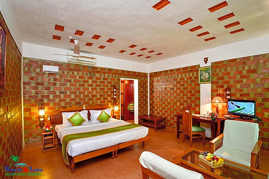 What are the room types available at Beach and Lake Ayurvedic Resort, Kovalam?