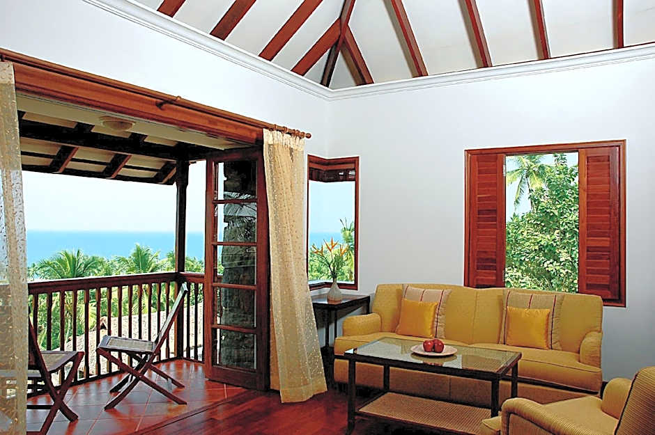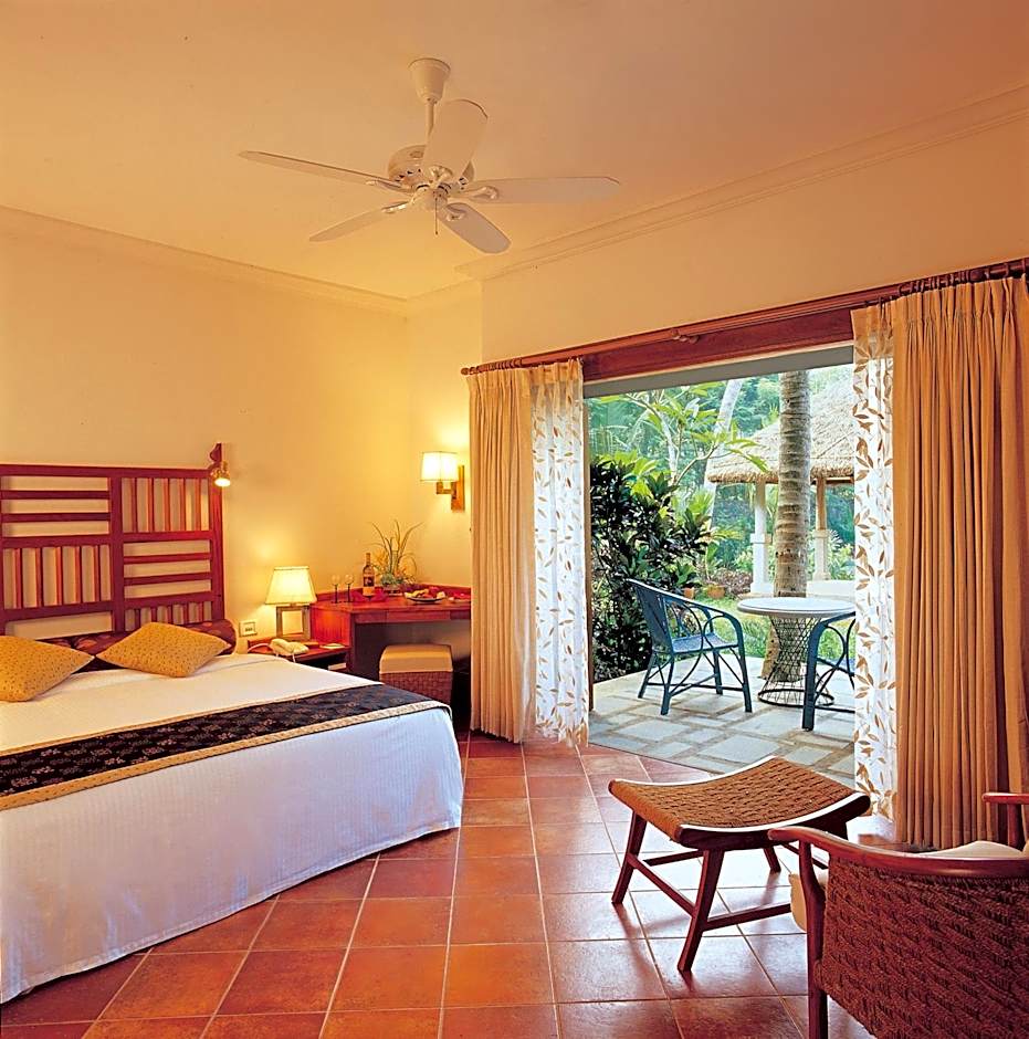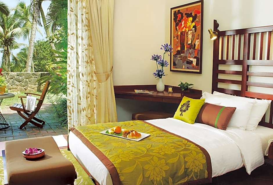 Hillside cottages feature elephant grass thatched roofs, a private balcony/courtyard and large French windows overlooking the sea shore and backwaters. Includes a 32-inch flat-screen TV and an ergonomic work space.