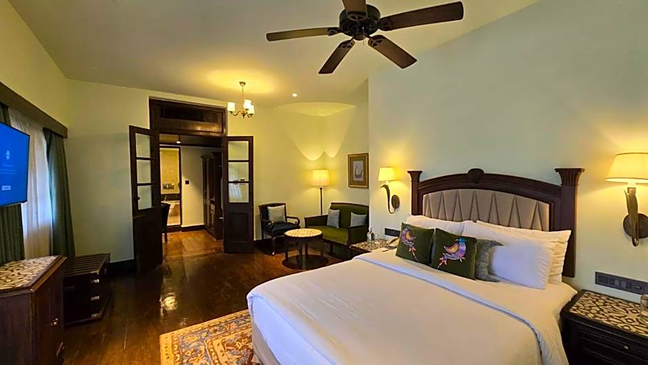 The Gateway Hotel Pasumalai Madurai offers a range of room types including Luxury Suites, Colonial Suites, Heritage Rooms, and Premium Rooms. All rooms have a garden view and are non-smoking. The rooms are available with either king-size or twin beds and vary in size from 377 sqft to 1152 sqft. The accommodations can accommodate varying numbers of adults and children, ranging from 2 adults and 1 child to 3 adults and 2 children.