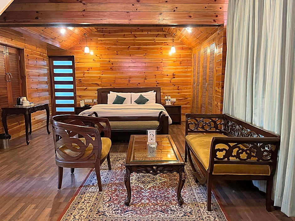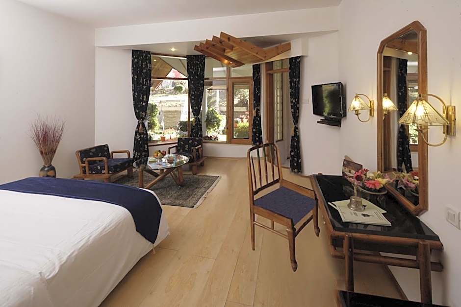Room with modern interiors features a private landscaped garden with swing. Imported, laminated wooden flooring and heating are included. It also has a flat-screen satellite TV, seating area and electronic safe. Private luxurious bathroom includes a bathtub, hairdryer and free toiletries. Additional benefits include: - Nonalcoholic welcome drink on arrival - Nuts and cookies in the room once during the stay - Use of Happy Hours at bar (1700 hrs – 2030 hrs) - Buy one get one free (Applicable only on the domestic brands of the same value. Not applicable on tobacco & beer)