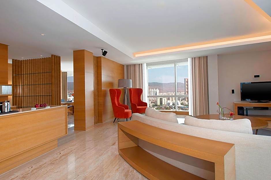 The suite offers air conditioning, a mini-bar, as well as a private bathroom boasting a bath and a shower. The suite has carpeted floors, a seating area with a TV with cable channels, a tea and coffee maker, executive lounge access, as well as a wardrobe. The unit offers complimentary cocktails and starters at the lounge between 17:00 - 20:00.