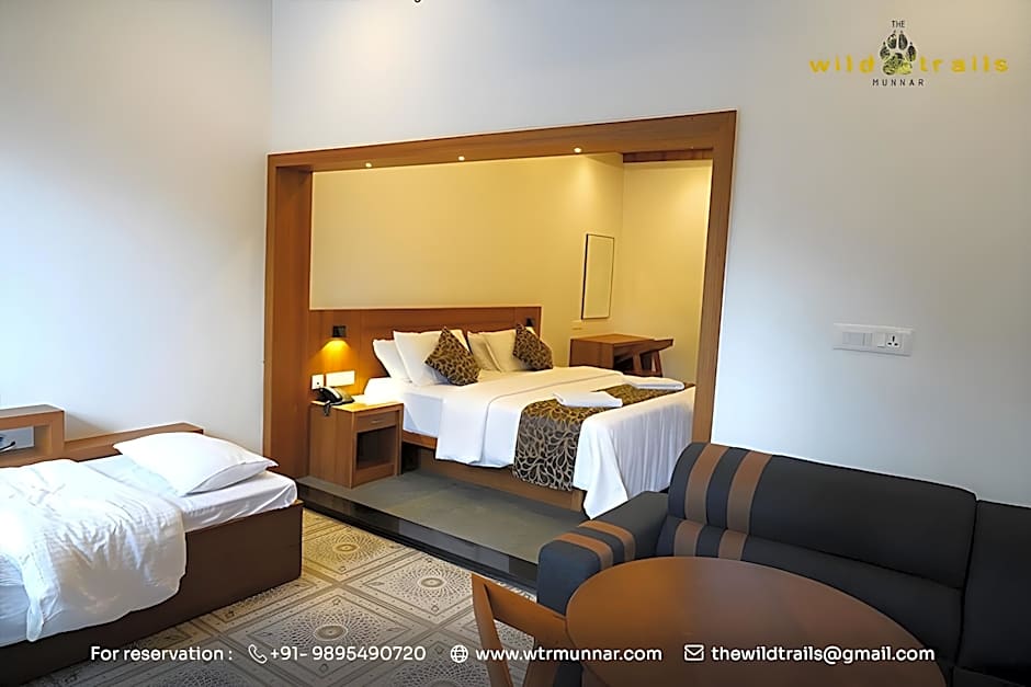 What are the room types available at The Wild Trails Munnar Resort?