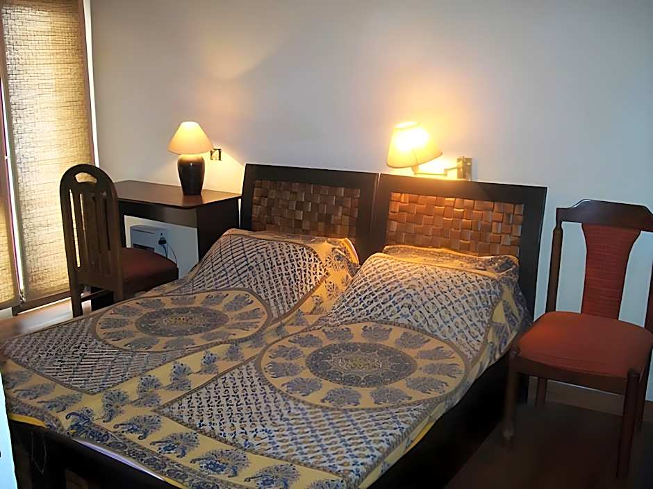 The structure is in a very beautiful and quiet neighborhood in Delhi, close to many shops and restaurants and the iconic Qutub Minar. Metro Station Saket close by and easily reachable. The staff were very nice and helpful. The owner Sanjeev takes good care of his guests and was available by phone at any moment for any question. The continental breakfast was enjoyable: tea/coffee with an omelette and/or butter-jam toast. Each floor had a kitchen, fridge and a washing machine in common.
