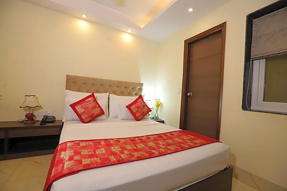 Address: A 49 Arakhashan Road Db Gupta Road, Paharganj. Featured amenities include Private Parking (free), Wifi (free), Room service, Shuttle service (extra charges), Meeting/Banquet facilities (extra charges), Airport shuttle (extra charges), Air conditioning, Parking On Site (free), Soundproof rooms, 24-hour front desk, Non-smoking rooms, Elevator, Upper floors accessible by elevator, Extra long beds (> 6.5 ft), Free toiletries, View, Soundproof.