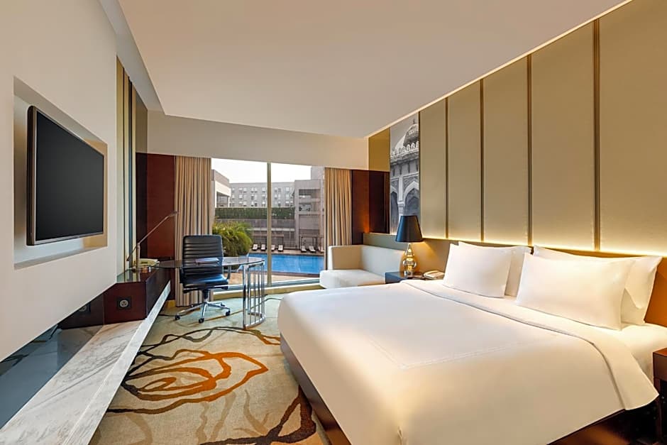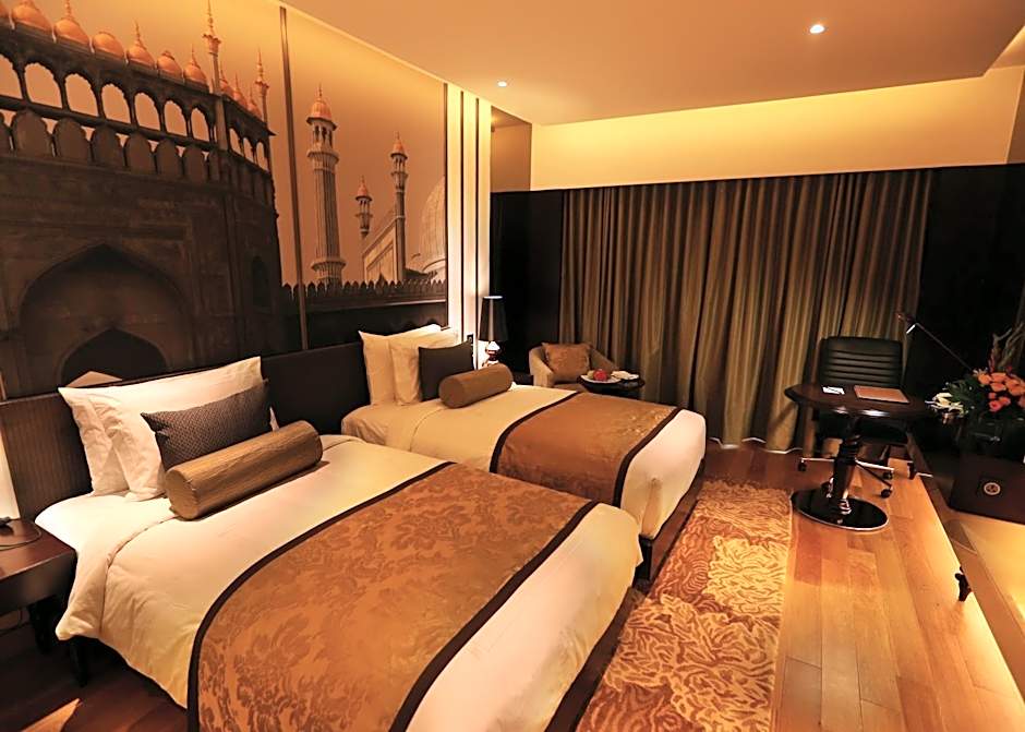 Three on-site dining venues keep flavors rolling from morning to night. Cafe Pride serves Indian and International dishes in a family-friendly, modern setting, while Shaan-E-Awadh delivers traditional Indian flavors, and Stallion Bar offers a modern vibe with Chinese and Indian bites. After a day of Delhi exploring, a sun deck beside the outdoor pool invites a relaxed moment, with landmark views adding a dash of city scenery to the scene.