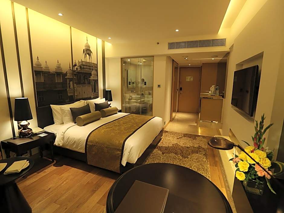 é um refúgio 5 estrelas no distrito Aerocity de Nova Délhi, localizado a cerca de do centro da cidade. Endereço: Asset 5a, Hospitality District, Delhi Aerocity, Próximo ao Aeroporto IGI. Possui 4,213 avaliações, oferecendo uma referência amigável para o viajante sobre a experiência.