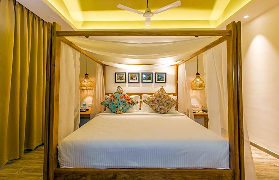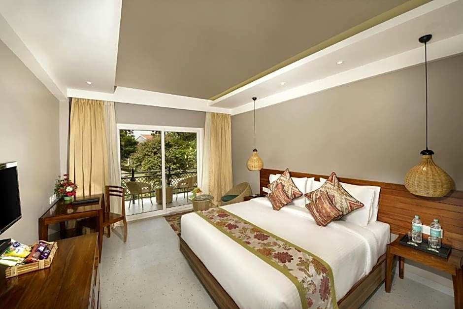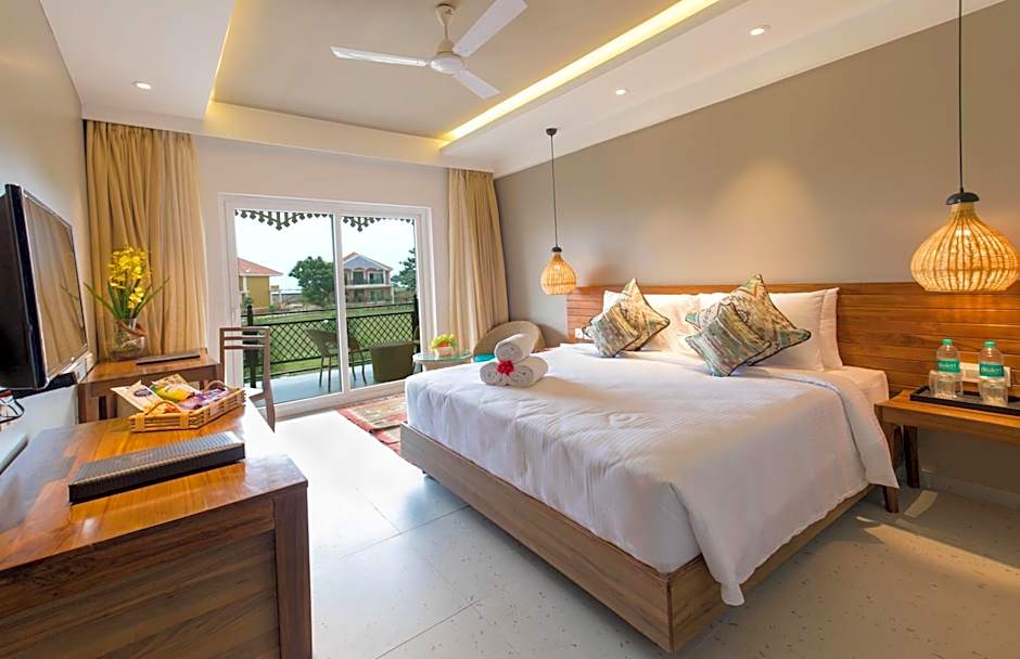 This room offers views of a sparkling lagoon and manicured lawns with rooms offering a wooden writing desk, mixture of twin beds and king size beds made in dark teak polished furniture, Mosaic floors with Spanish design tiles in wash room with individual shower cubicles with a rain shower and each room has a private balcony or sit out. This category comes with the daily newspaper, complimentary water, Wi-Fi internet connectivity, a LED television with satellite channels, in-room electronic safes, international direct dial facility, and a hair dryer.