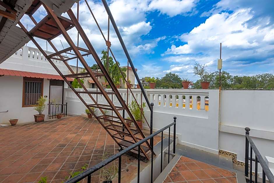 The hotel is in a heritage building, which is getting renovated and it will surely become an even better place to stay near the White City once it's done. Renovations didn't bother us. The location is very convenient with many restaurants nearby. There is a shop in the hotel where you can buy a variety of cold drinks and snacks. The continental breakfast was a very nice way to start the day. The owner of the hotel is very welcoming and accommodating. He helped us arrange a taxi to Kumbakonam via Gaigaconda Cholapuram at a very good price. It was a pleasure staying at the hotel.