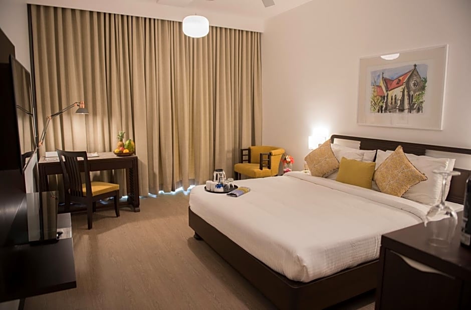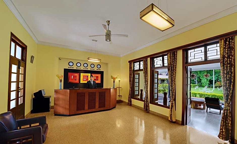 Overall vintage house feeling. Spacious rooms with furniture vintage type. Washrooms are so spacious and clean that it adds to comfort. Restaurant is like out of the world experience if u love silence n nature. Very old trees, and birds chirping around was so exotic experience. I can't forget jaggery coconut ice cream with Burmese khaus suey. Spiritual vibes everywhere, it's an amazingly quiet place.