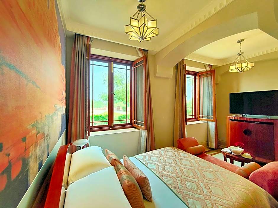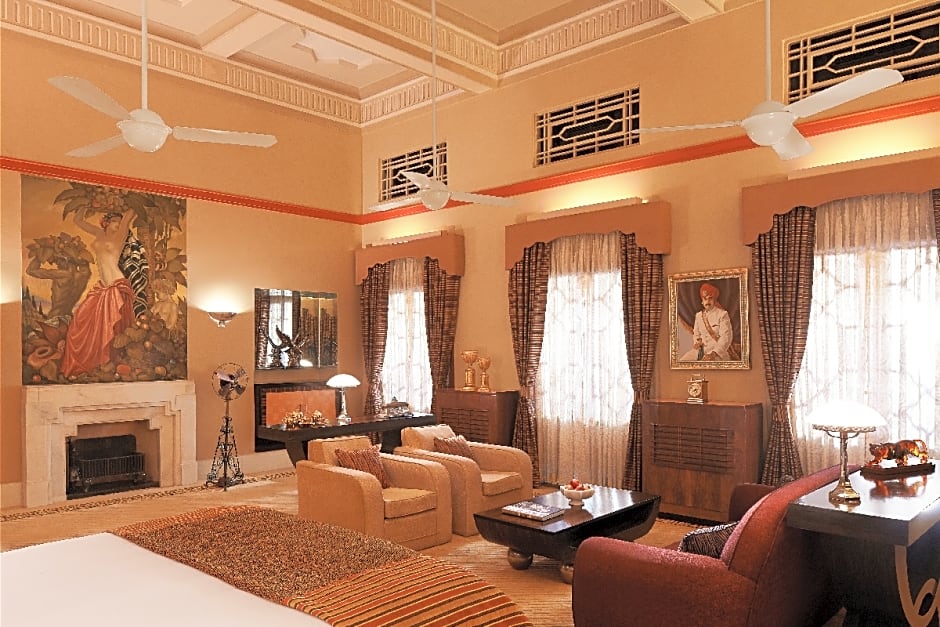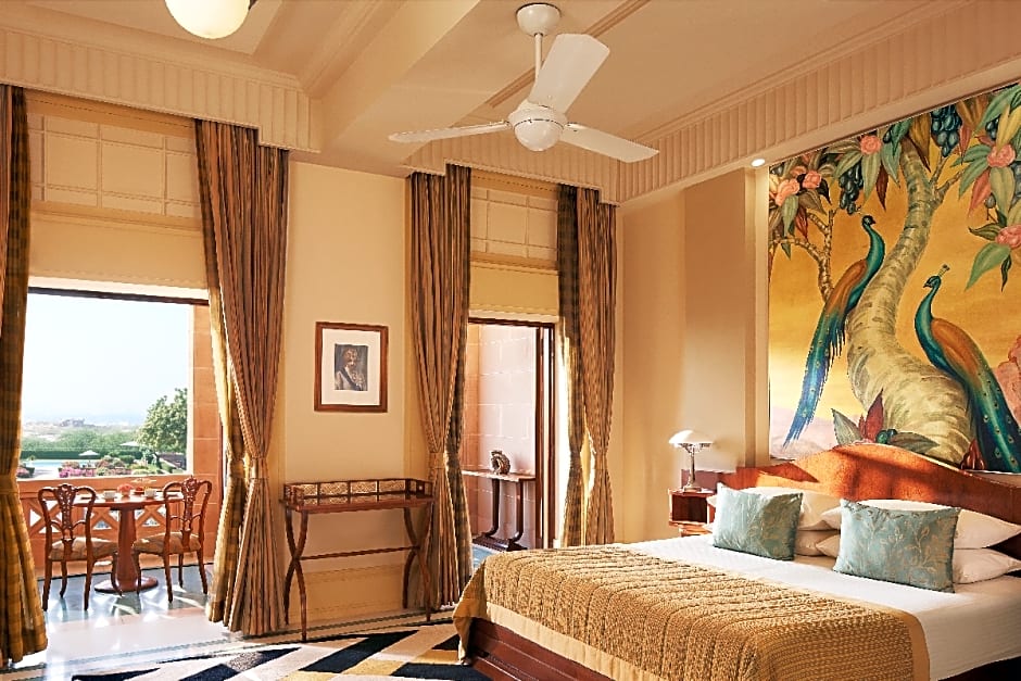 Luxurious Art Deco-style suite comes with sweeping views of Baradari Lawns and Mehrangarh Fort. Includes a 42-inch flat-screen TV, DVD player and a private bar. Relaxing spa bath menus are included.