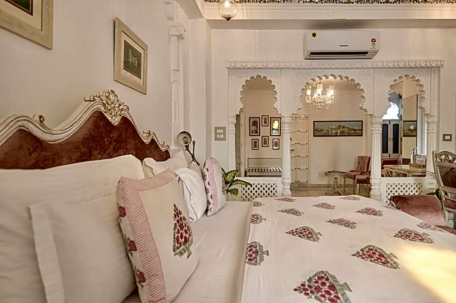 The rooms at Jagat Niwas Palace Hotel offer a variety of options including Suites, Standard Rooms, Haveli Rooms, and Heritage rooms. Smoking is not allowed in any of the rooms. The occupancy ranges from 2 adults and 1 child to 3 adults and 1 child, with bed sizes varying from double beds to queen size beds.