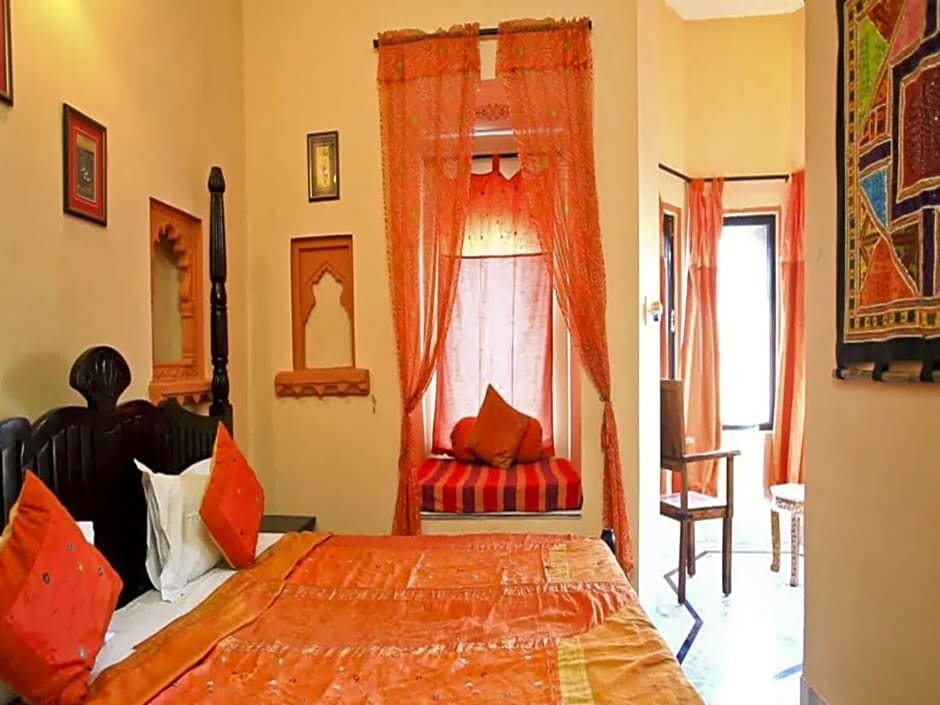 Air-conditioned rooms have a day bed, a safety deposit box and a TV with cable channels. The private bathroom provides hot and cold showers. Larger rooms feature views of Lake Pichola and Lake Swaroop Sagar. These rooms have jharokhas (swings).