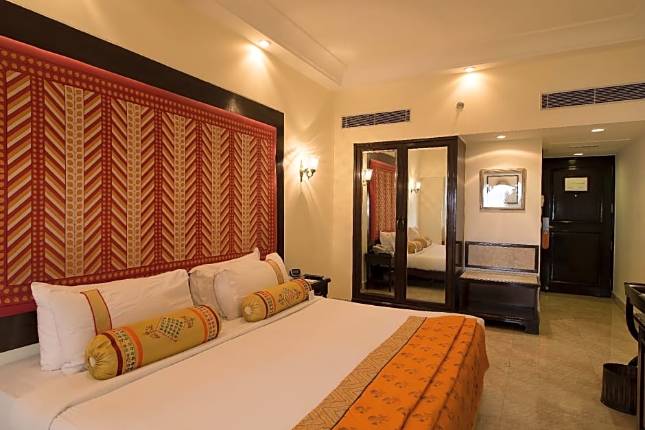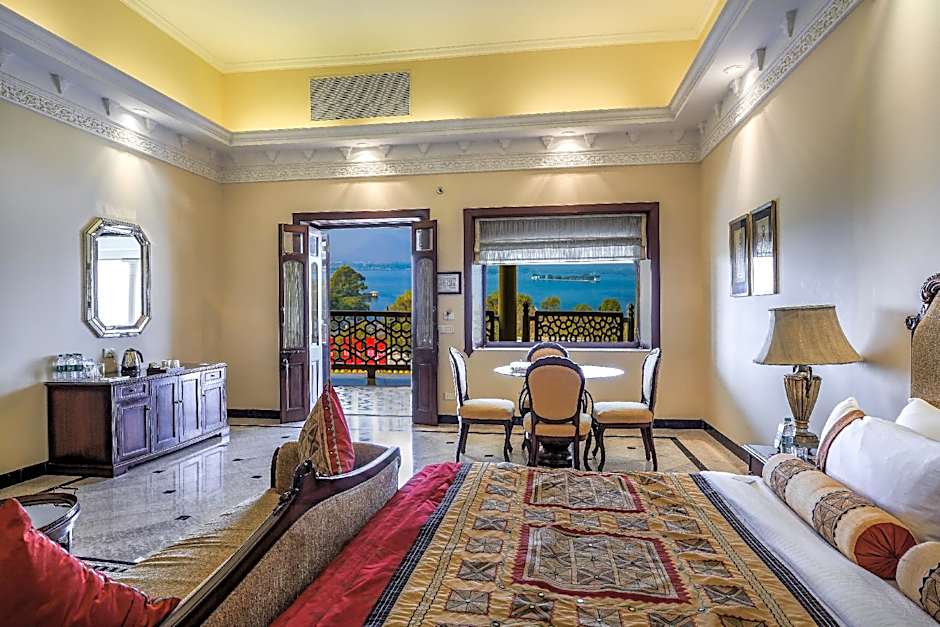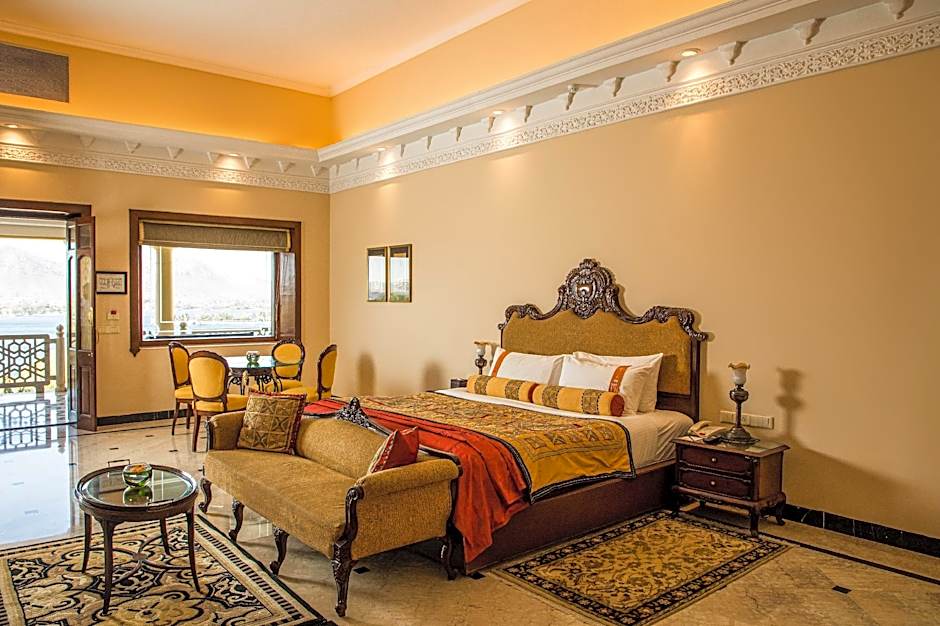 Spacious room features a separate dining area, a 42-inch flat-screen TV, and a bathtub. It offers a panoramic view of the hotel’s sprawling gardens, Udaipur skyline and Fateh Sagar Lake.