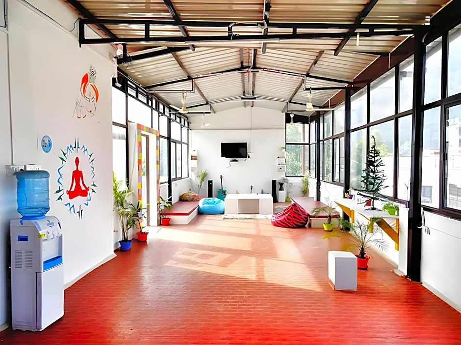 After a day of exploring the sacred ghats or embarking on exhilarating yoga sessions, retreat to Hostel Cozy Beds for some well-deserved relaxation. Though the hostel caters exclusively to adults, it’s the perfect sanctuary to meet fellow travelers or simply enjoy some quiet moments on the sun deck or terrace, both offering breathtaking views of Rishīkesh. The lively atmosphere is complemented by live music performances—note that there’s a small additional fee to enjoy these spirited evenings, perfect for unwinding after a day of adventure.