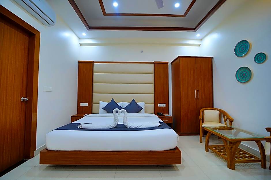 The staff was accomodating. They allowed us to use the space to change after water sports even after checking out. The hotel was clean, sanitized and well maintained. All basic facilities were there including wifi. It's close to market as well as beach.